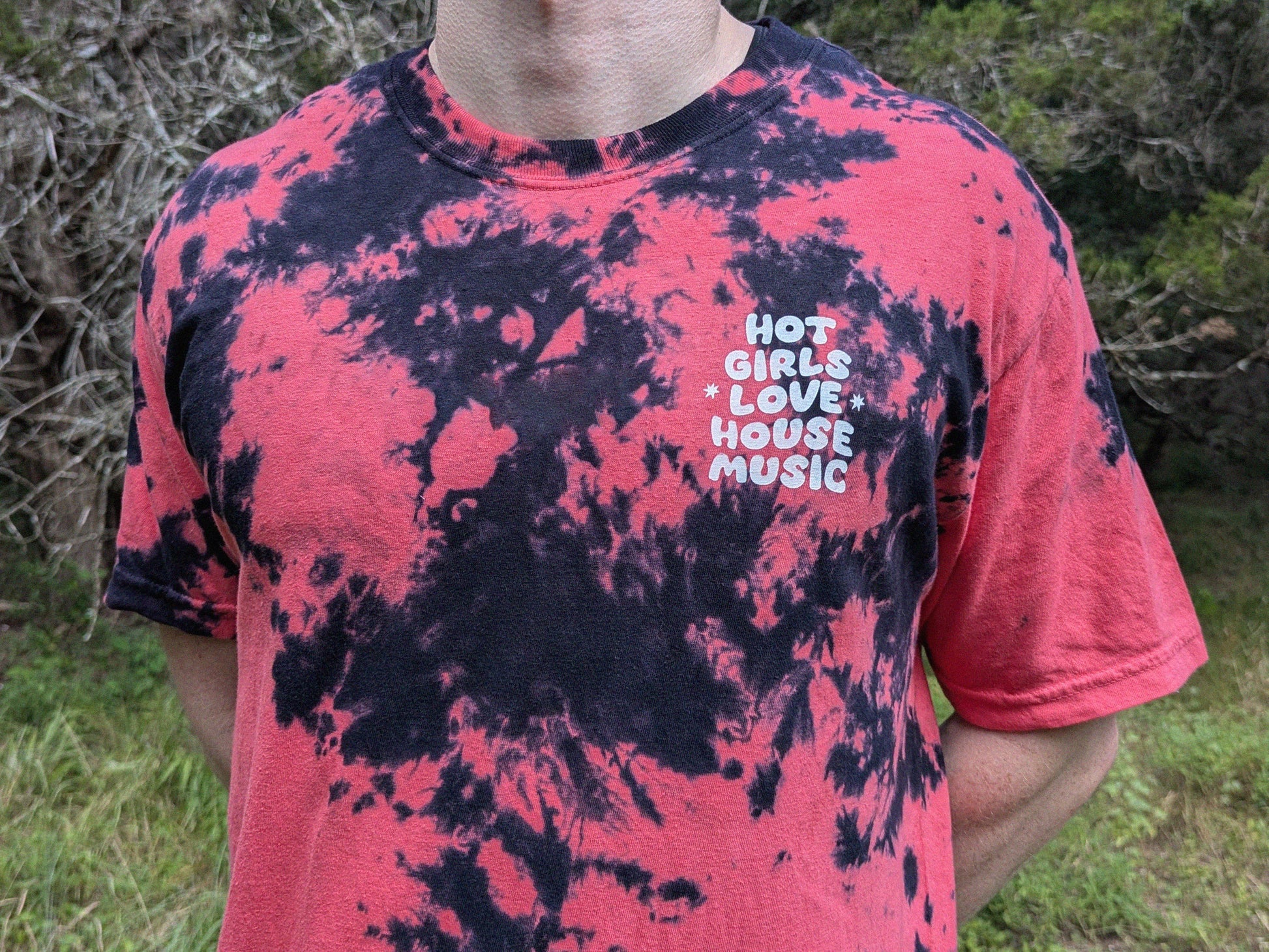 - A tie dye shirt with Hot Girls Love House Music screen printed on it