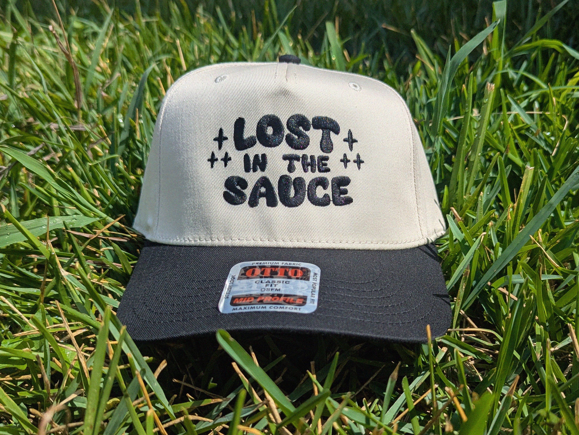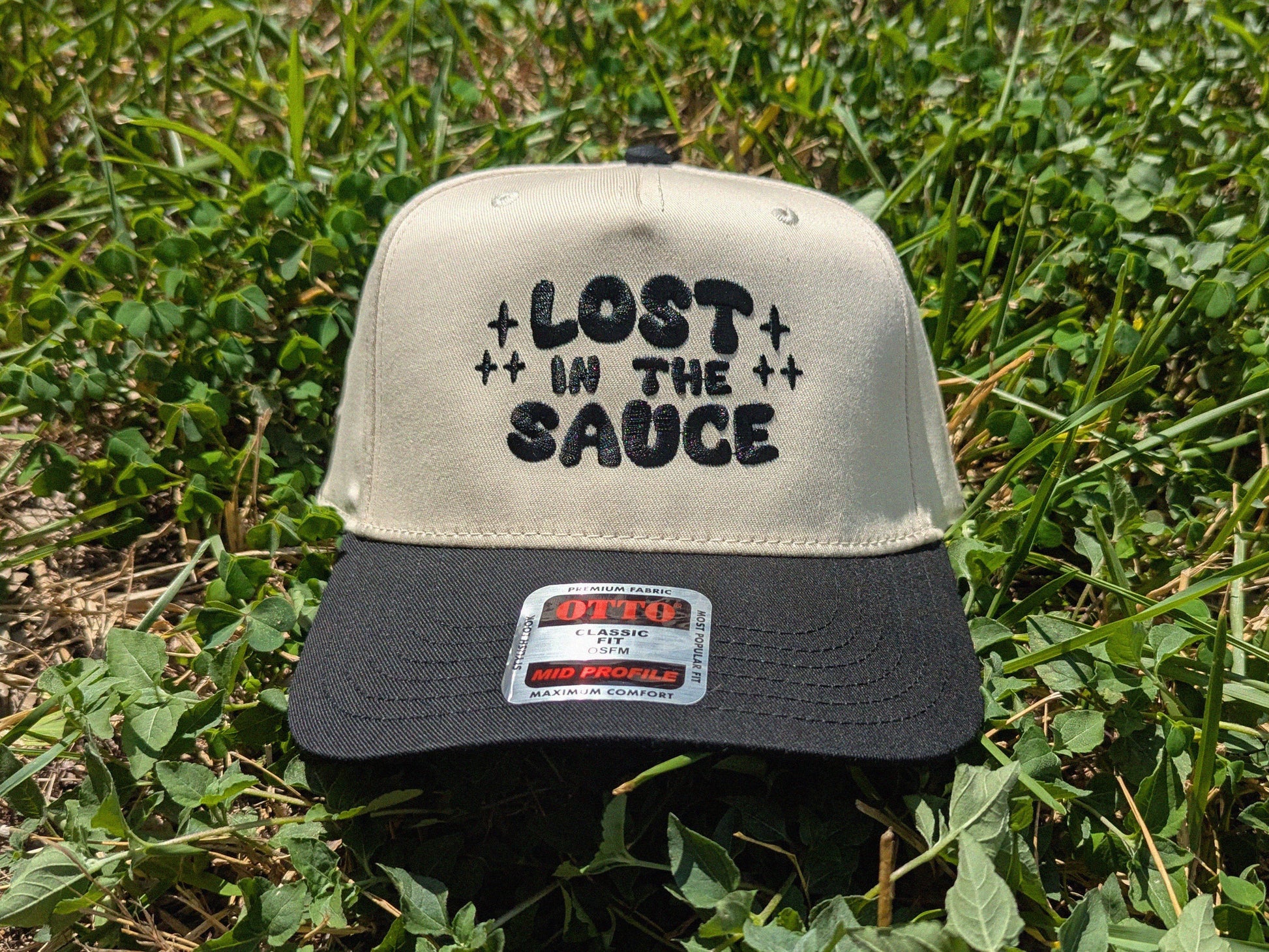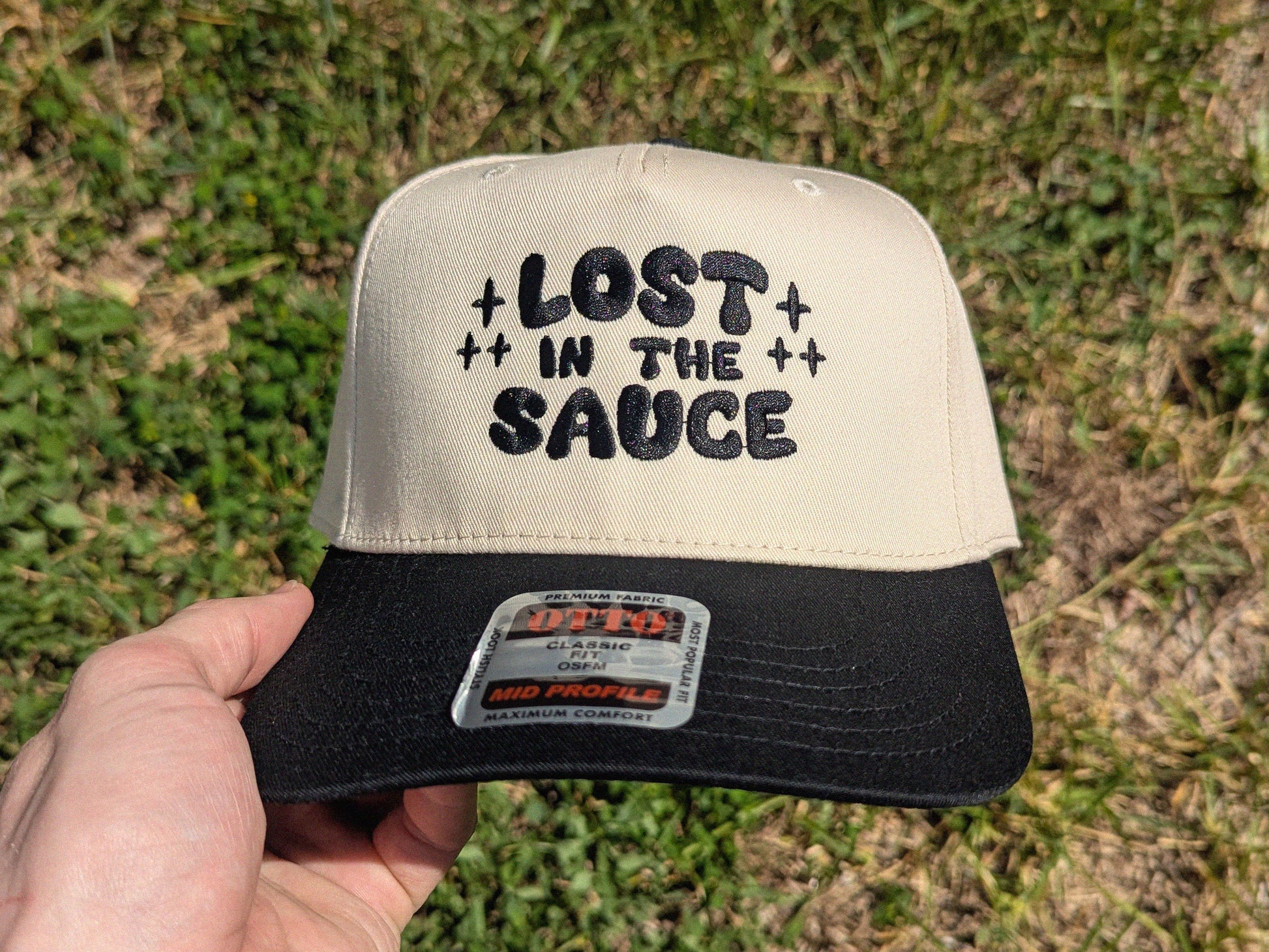 Lost in the Sauce Embroidered Trucker Cap - Otto Cap Funny Hat Raver Gift Music Festival 5 Panel Mid Profile Cap - Rave Hat Meme Hat Gift
