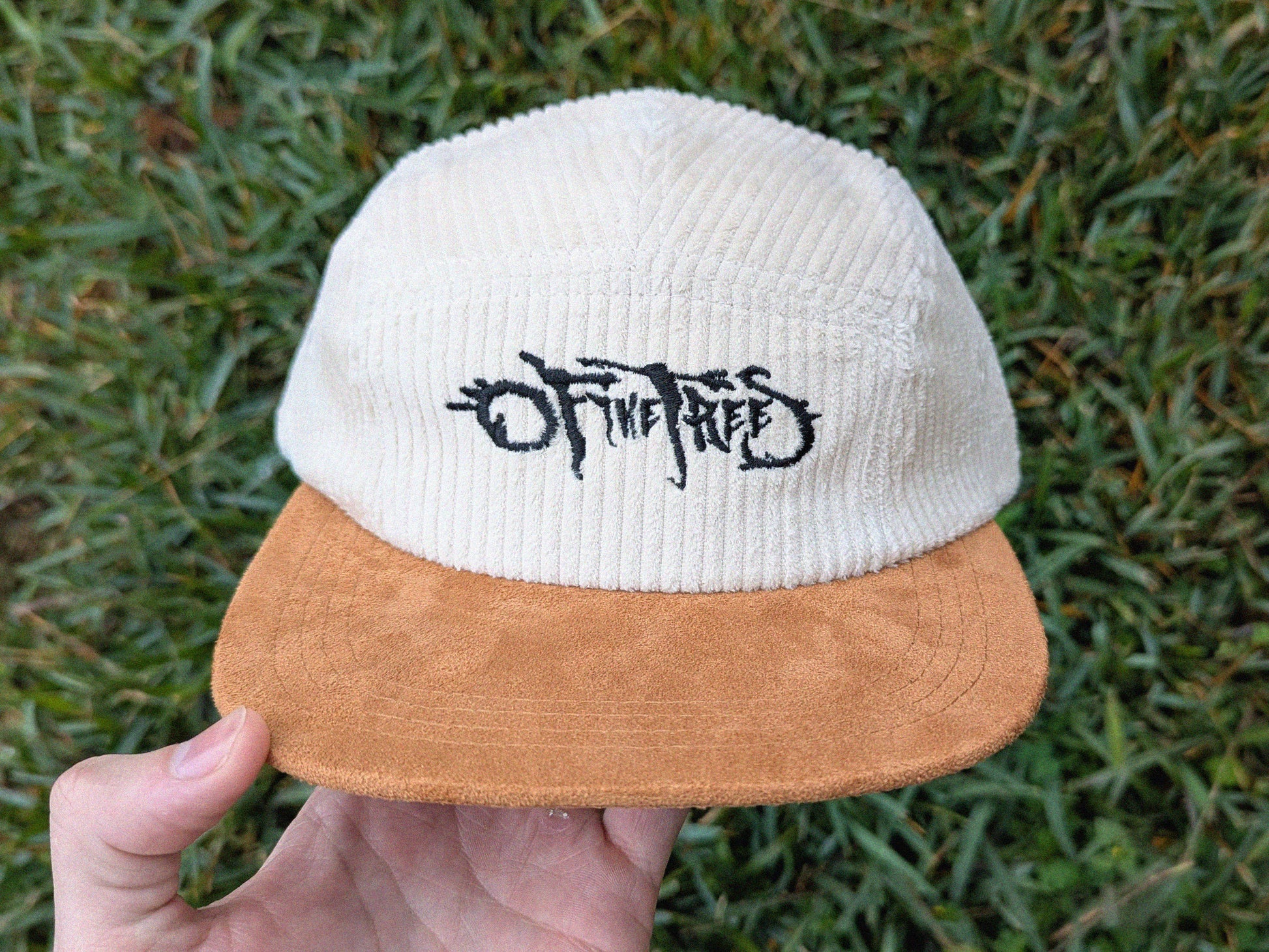 Elevate your style with this embroidered corduroy hat featuring Of The Trees stitched on the front panel. Each cap is carefully crafted in-house with attention to quality and detail.