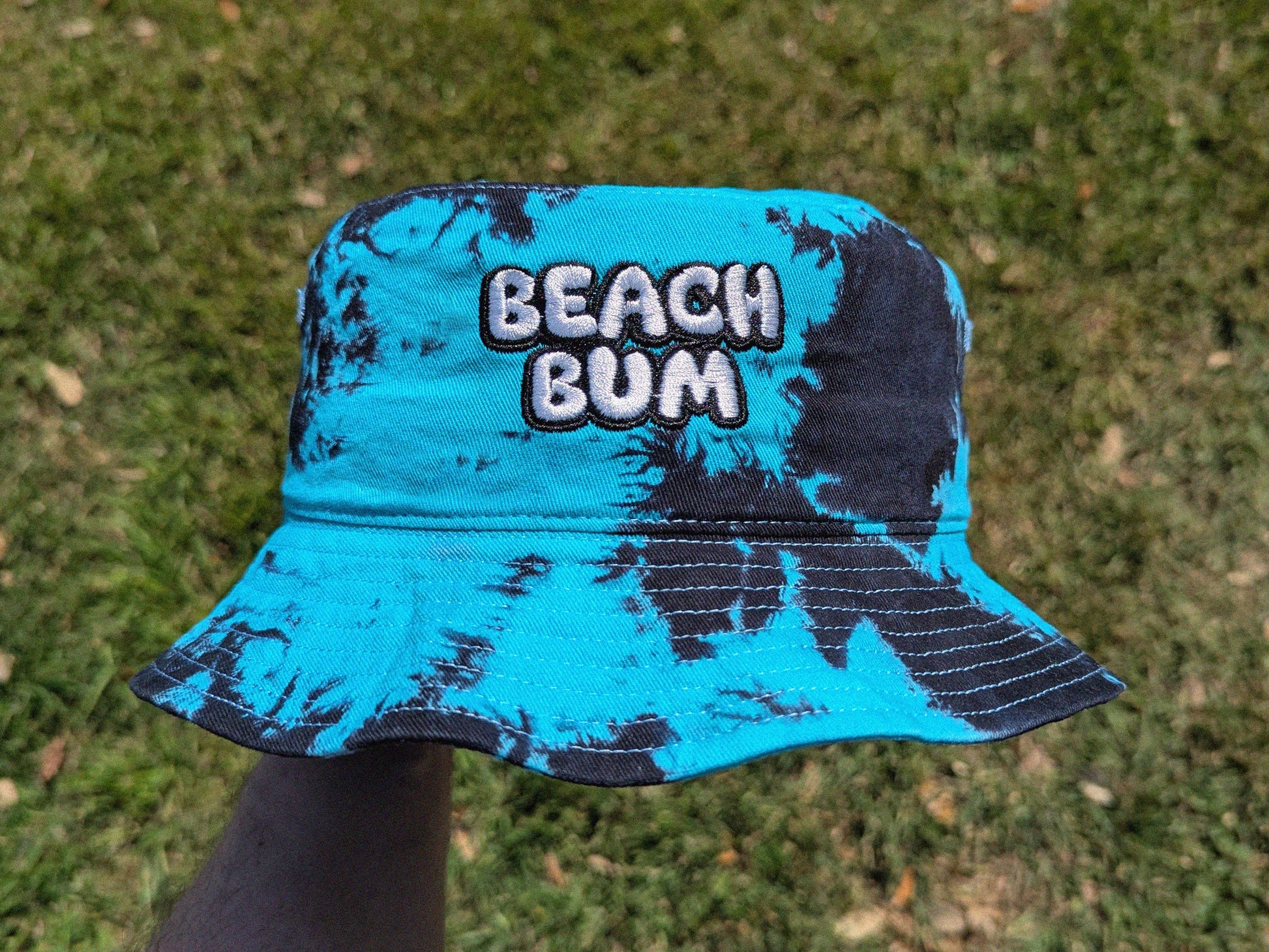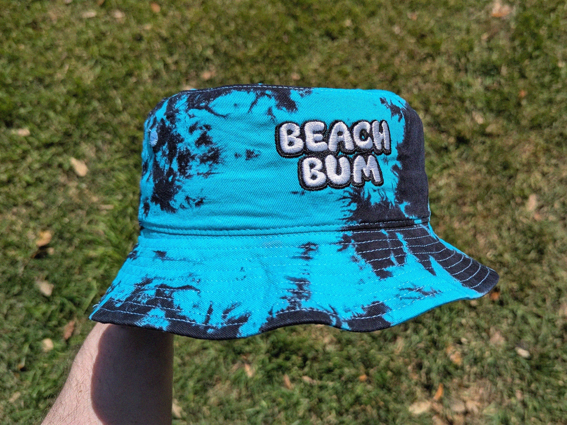 Beach Bum - Embroidered Tie Dye Bucket Hat - Summer Sun Hat Festival Gear Vacation Accessory Unisex Cap Hippie Style Beach Hat Vibe Hat Gift